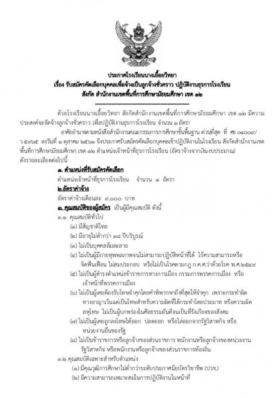 ยกเลิก ประกาศฉบับเดิม!!!!!!!!!!โรงเรียนนางเอื้อยวิทยาเปิดรับสมัครครูธุรการ 22-28 ตุลาคม 2561