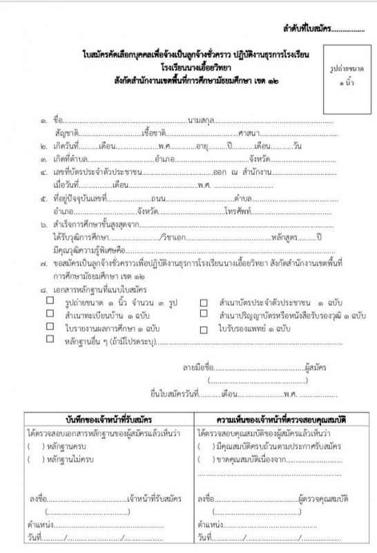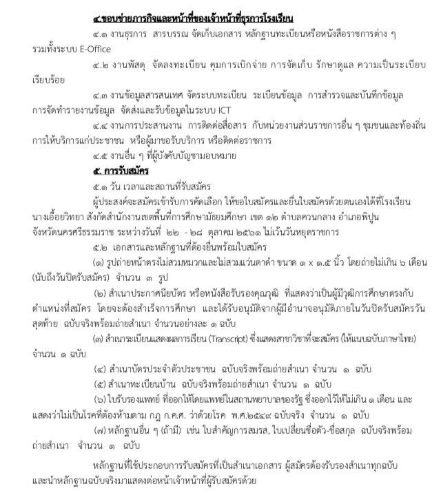 โรงเรียนนางเอื้อยวิทยา มีความประสงค์เปิดรับสมัคร ครูธุรการโรงเรียน รับสมัคร ตั้งแต่ วันที่ 22 - 28 ตุลาคม 2561