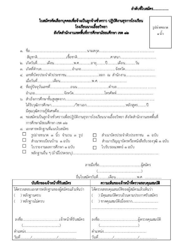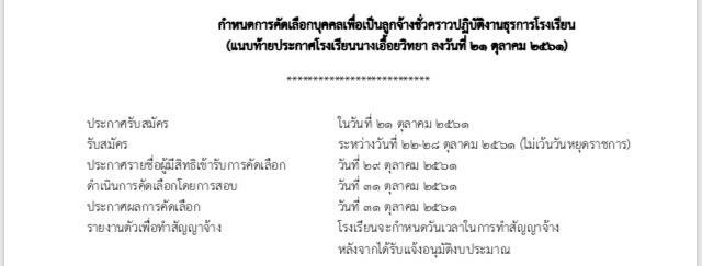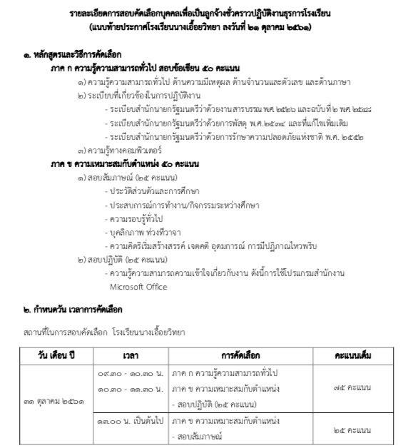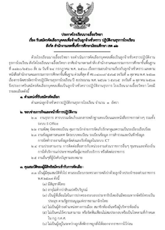 โรงเรียนนางเอื้อยวิทยา รับสมัคร ครูธุรการโรงเรียน ระหว่างวันที 22 - 28 ตุลาคม 2561!!!ฉบับใหม่!!! (ไม่เว้นวันหยุดราชการ)