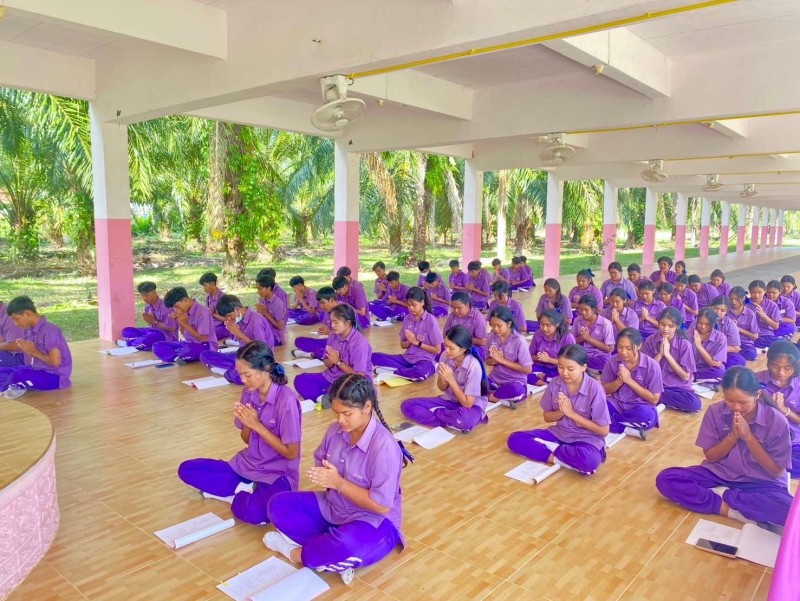 โรงเรียนนางเอื้อยวิทยา ได้ให้นักเรียนร่วมกิจกรรมสวดมนต์สุดสัปดาห์ เพื่อฝึกสมาธิ สร้างความสงบ ให้จิตใจแจ่มใส