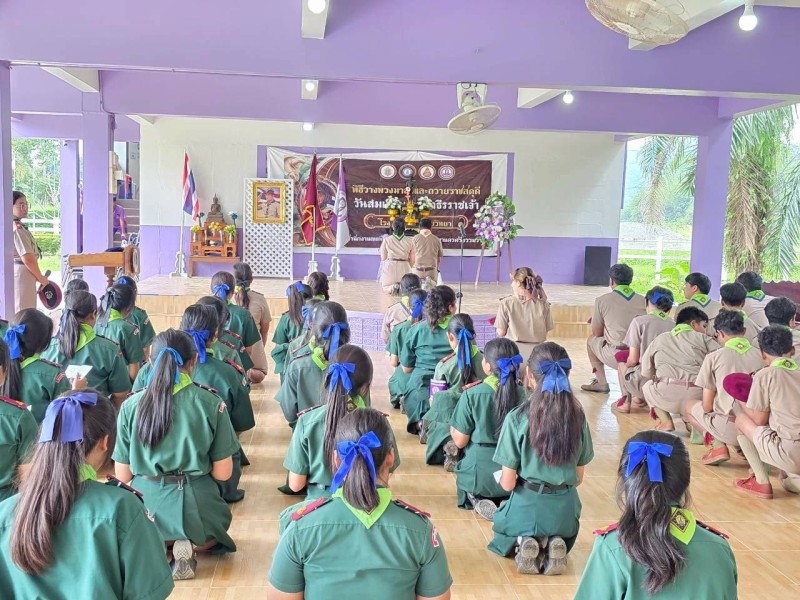 โรงเรียนนางเอื้อยวิทยา นำโดย นายกันตพงษ์ ณ ระนอง ผู้อำนวยการโรงเรียนนางเอื้อยวิทยา ร่วมกับ ครูพนิตอนงค์ สุวรรณวัชรกูล หัวหน้างานกิจกรรมพัฒนาผู้เรียน พร้อมด้วยคณะครูและบุคลากรทางการศึกษาทุกท่าน ร่วมกันจัดกิจกรรม “พิธีวางพวงมาลาและถวายราชสดุดี” เนื่องในวันคล้ายวันสวรรคตของพระบาทสมเด็จพระมงกุฎเกล้าเจ้าอยู่หัว (ร.6) พระผู้พระราชทานกำเนิดลูกเสือไทย โดยมีพระสมัญญานามว่า “พระมหาธีรราชเจ้า” ทรงก่อตั้งกิจการลูกเสือในประเทศไทยเมื่อ พ.ศ. 2454 และทรงทำนุบำรุงกิจการลูกเสืออย่างต่อเนื่องจนเกิดความเจริญมั่นคง และหลังจากเสร็จสิ้นกิจกรรม ลูกเสือ เนตรนารี ได้ร่วมกันทำกิจกรรมบำเพ็ญสาธารณประโยชน์บริเวณรอบๆโรงเรียนร่วมกัน